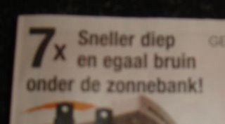 De uitdrukking "onder de zonnebank" roept bij mij steevast vragen op. Het is net zoiets als "achter de computer zitten" . Achter mijn computer is ± 30 cm plaats, daar ga ik niet zitten. Ik zit AAN mijn computer. Een zonnebank heb ik niet, en àls ik er een had zou ik er OP gaan liggen. NIET er onder. Mensen die onder de zonnebank gaan liggen, gaan waarschijnlijk ook nooit IN de douche...