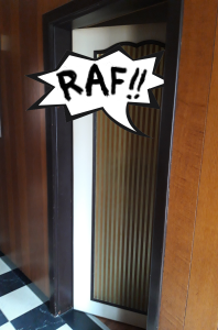 Raf heeft zichzelf ondertussen binnen gelaten, zoekt en vindt de deur naar de woonkamer en stapt, terwijl hij tegen de deur klopt, voorzichtig binnen.