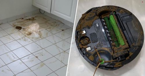 Nee, niets van dat alles. Maar zoals verwacht heeft Murphy de Kneutersen niet gespaard! De robotstofzuiger is dan wel op het geprogrammeerde uur beginnen rondrijden en zijn werk doen; eerst langs de muren in de woonkamer en de keuken en dan gaandeweg onder stoelen, zetels en tafels rijden en stofzuigen, maar niet alles werd even goed verteerd door het borstel- en zuigmechanisme!