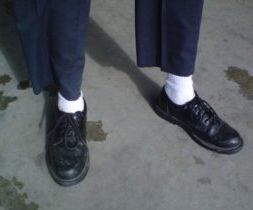 Ma en Erich komen terug de woonkamer binnen. De broek die Erich gekregen heeft is er eentje van Pa. Aan de taille zit het allemaal goed, maar Erich is een opgeschoten slungel, waardoor de broekspijpen ietwat aan de korte kant zijn. De witte sokken, die Erich liever verborgen had gehouden, zijn nu uiteraard goed te zien. Wat 'n zicht! Erich wordt uitgelachen maar het is allemaal goed bedoeld.