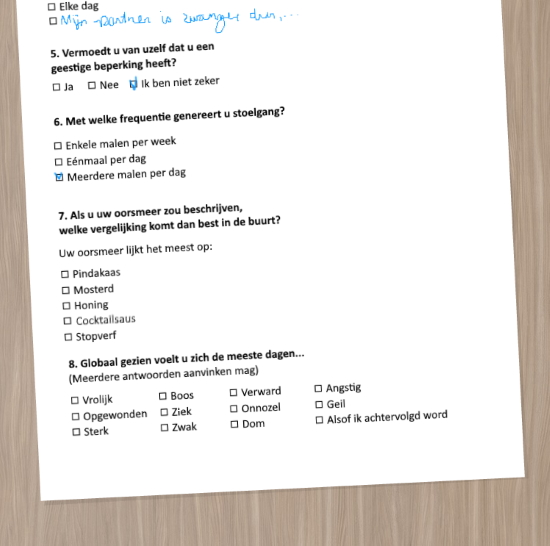 Op goede hoop dan maar. Jos en Anthony nemen plaats in de refter. Een assistent komt binnen met enkele papieren. Het is een vragenlijst die ze eerst even moeten invullen, om achteraf eventueel dingen te kunnen bepalen. De vragen op de lijst zijn op zijn minst "niet alledaags" te noemen. Wat wil men hiermee allemaal achterhalen? Wat 'n vragen!