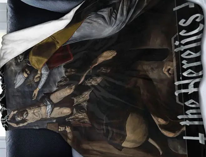 Ma fronst de wenkbrauwen en de mond, pakt de deken en vouwt ze dubbel, zodat de opdruk binnenin zit.